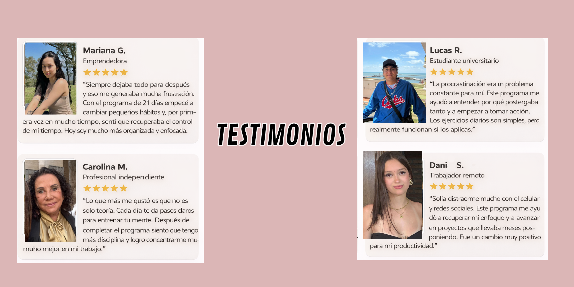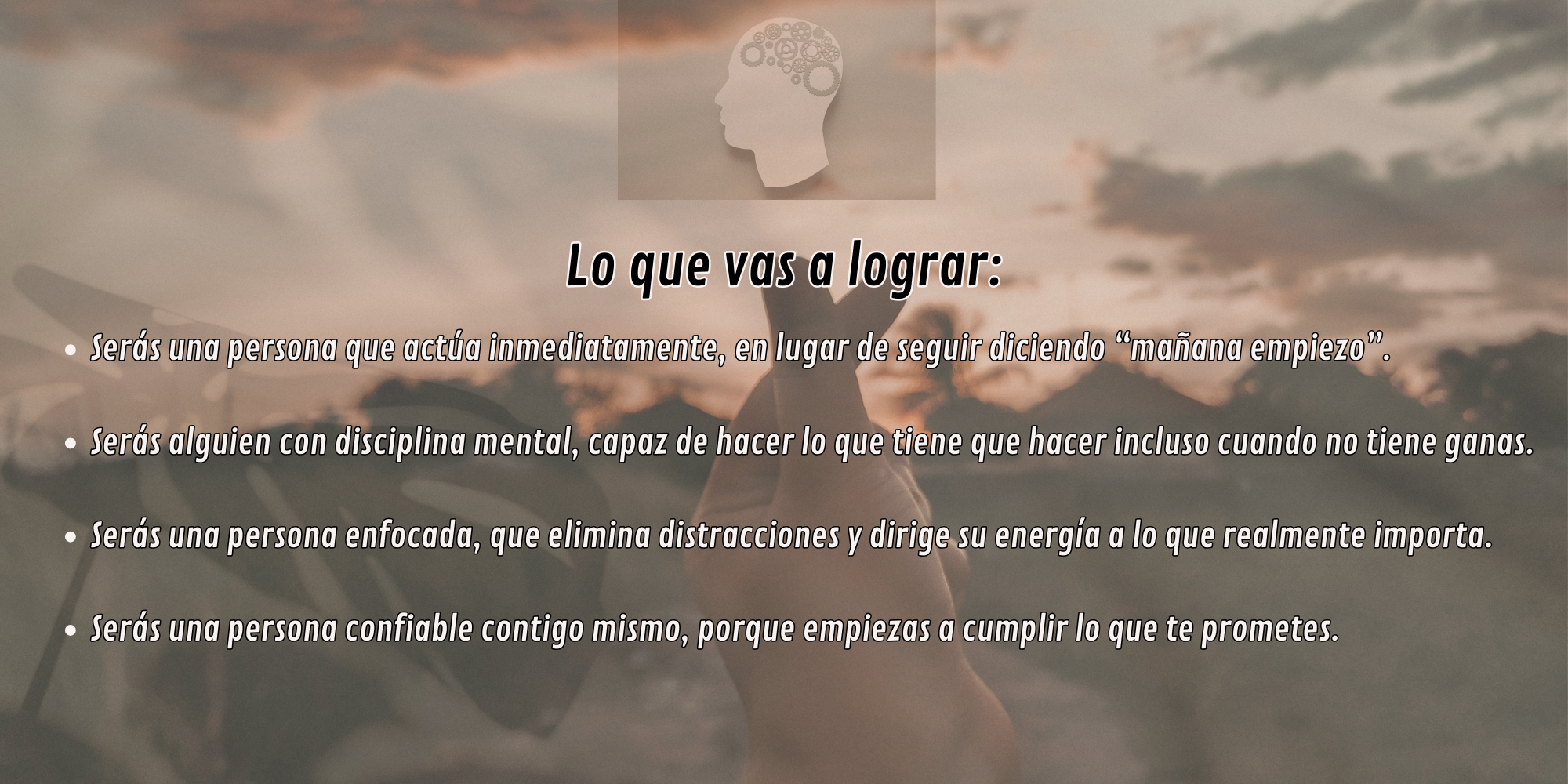 Sí. El programa está diseñado con un sistema práctico de 21 días que te ayudará a entender por qué procrastinas y a desarrollar hábitos diarios para entrenar tu disciplina mental y tomar acción.